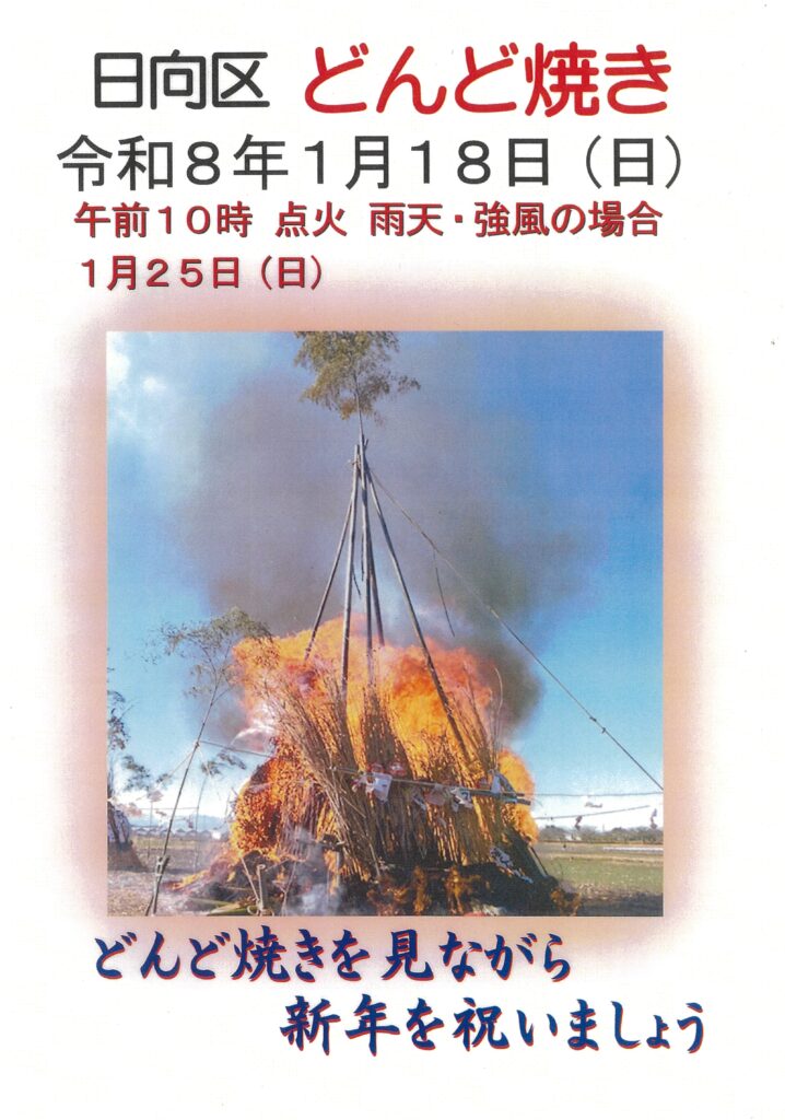【令和8年1月18日(日)10:00〜「日向区のどんど焼き」】