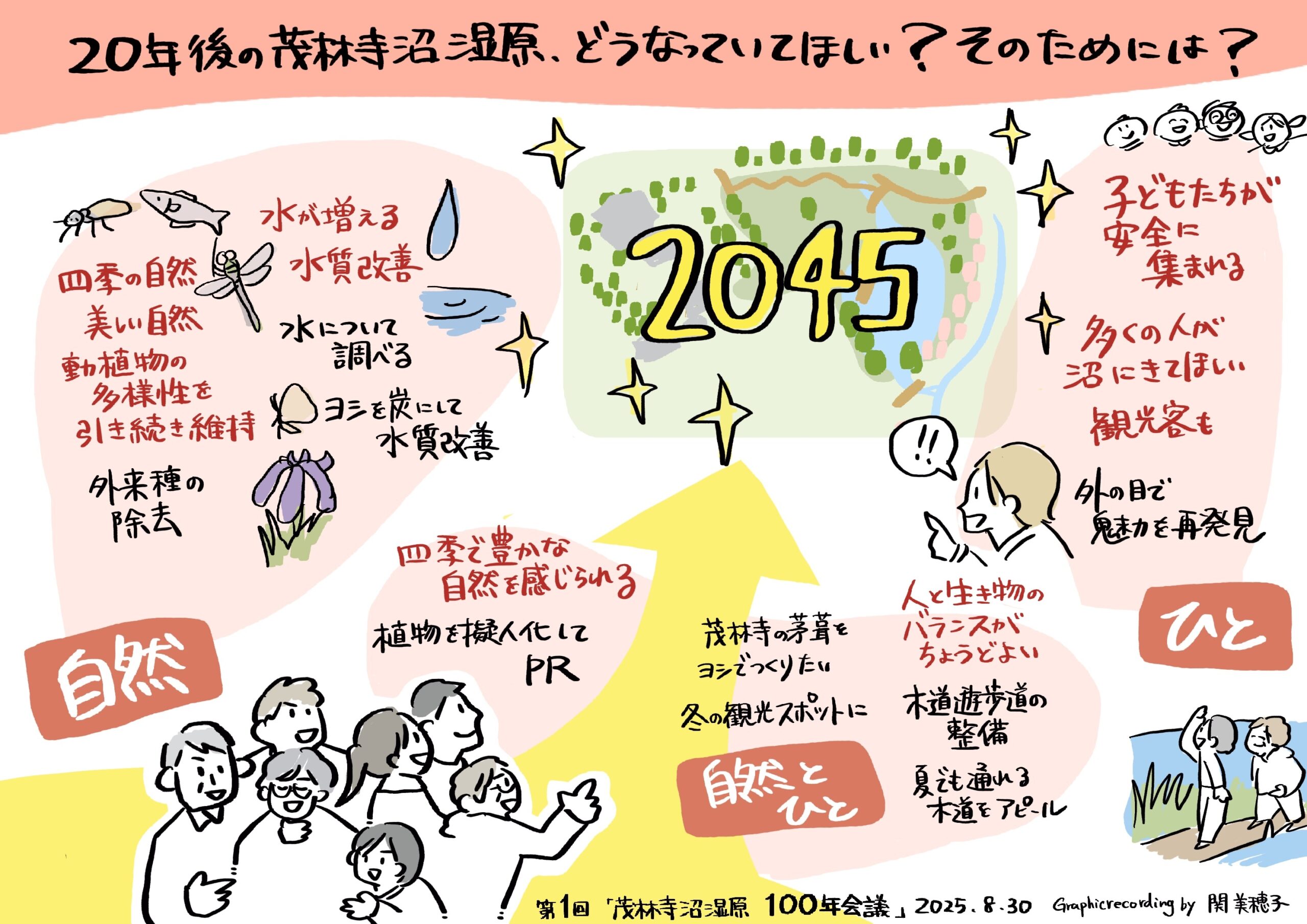 ・5つのグループに分かれて、「20年後の茂林寺沼湿原、どうなってほしい?そのためには?」テーマに対話しました。