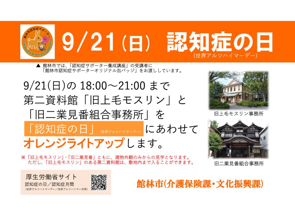 ■9/21(日)18:00〜21:00「認知症の日」オレンジライトアップ実施しました。