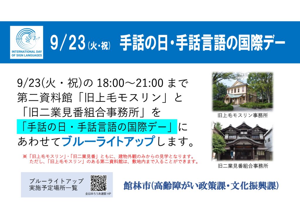 ・9/23(火・祝)の「手話の日・手話言語の国際デー」のブルーライトアップもお楽しみに!