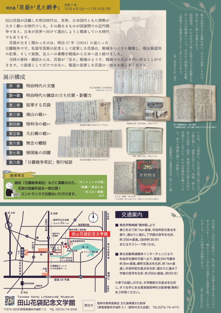■展示会名:田山花袋記念文学館 特別展 「花袋が見た戦争」