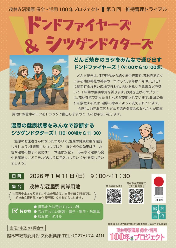環境省「令和7年度良好な水環境保全・活用モデル事業」に採択いただいた館林市の「茂林寺沼湿原保全・活用100年プロジェクト」。
