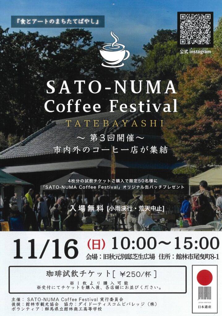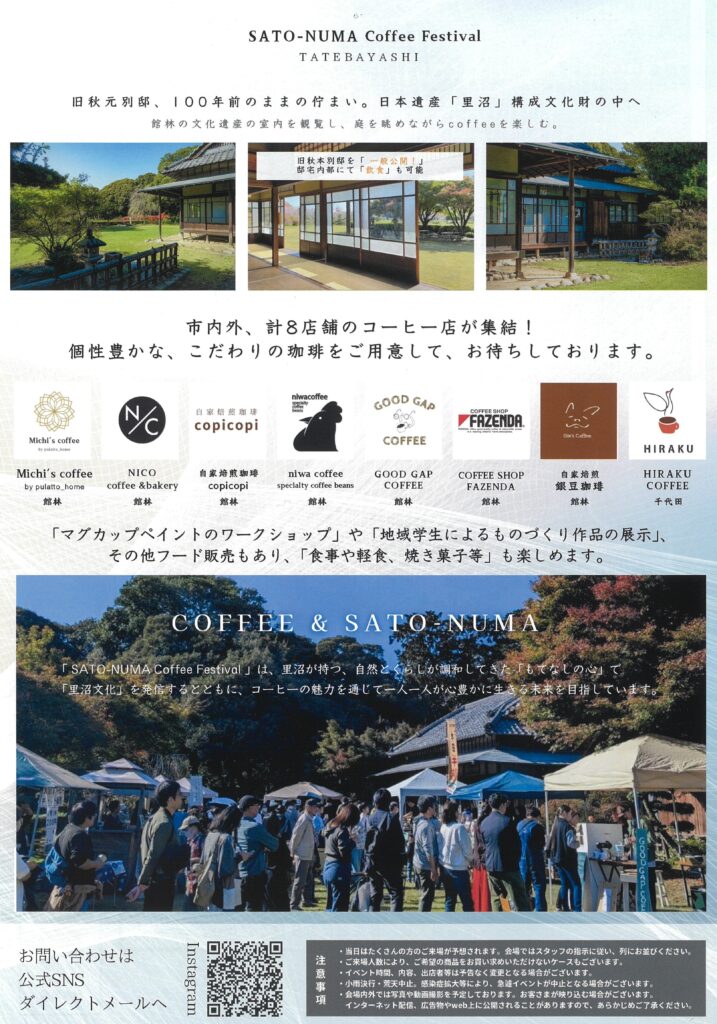 【11/16(日)10:00〜15:00 第3回「SATO-NUMA Coffee Festival TATEBAYASHI」in 旧秋元別邸】